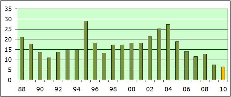 Falando sobre o Brasil, na quarta-feira, o governo anunciou os números sobre desmatamento na Amazônia Legal. Pelo segundo ano consecutivo, foi registrada a menor área desmatada desde 1988, quando o monitoramento foi iniciado pelo Projeto de Monitoramento do Desflorestamento na Amazônia Legal (PRODES), do Instituto de Pesquisas Espaciais (INPE). Entre agosto de 2009 e julho de 2010, foram desmatados 6,4 mil Km², uma queda de 13,6% em relação ao período anterior, antecipando as metas estabelecidas pelo Plano Nacional de Mudanças Climáticas em cinco anos. Esse assunto foi tema de uma matéria do ECO, que lembrou muito bem que todos esses esforços do Brasil em combater o desmatamento e reduzir as emissões do setor responsável pela maior parte das emissões do país podem estar ameaçadas pelas alterações do Código Florestal, conforme analisado por estudo publicado pelo Observatório do Clima na semana passada.