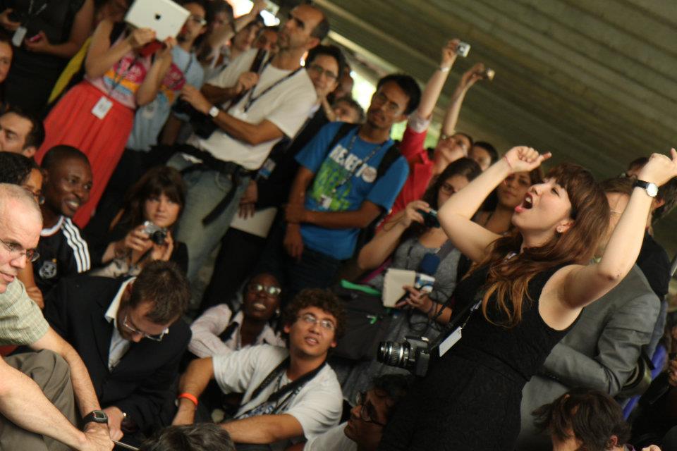 This has been my third UN conference. I was always worried about losing my badge before, because it is so tempting to think that at the next conference, or the one after that, things will be solved. But today, I question the power of the UN to solve our problems. I question the power of our governments, and of nation states. We are experiencing an unprecendented crisis of global governance. From the eurozone, to the corruption of wall street, to Egypt and Syria, and back here to Rio+20, we must ask ourselves how adept, and how able, our leaders are at acting in our best interests. When corporations hold the same rights as people, when Nick Clegg visits a football museum rather than negotiating a text on sustainable development (true story), I can no longer sit by and observe this process and hope to be heard.