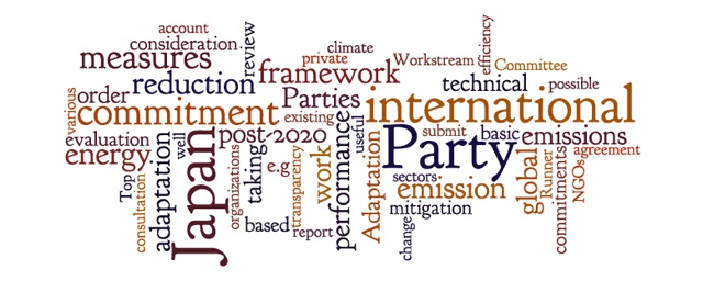 The Japanese submission suggests taking into account the G8 “proposal” of reducing global emissions by 50% in 2050 (developed countries reducing their own emissions by 80%). The vision of the country for the post 2020 climate agreement is defined as a flexible hybrid system with nationally determined commitments based on internationally-agreed rules. The submission of these commitments would then be followed by an international review process.