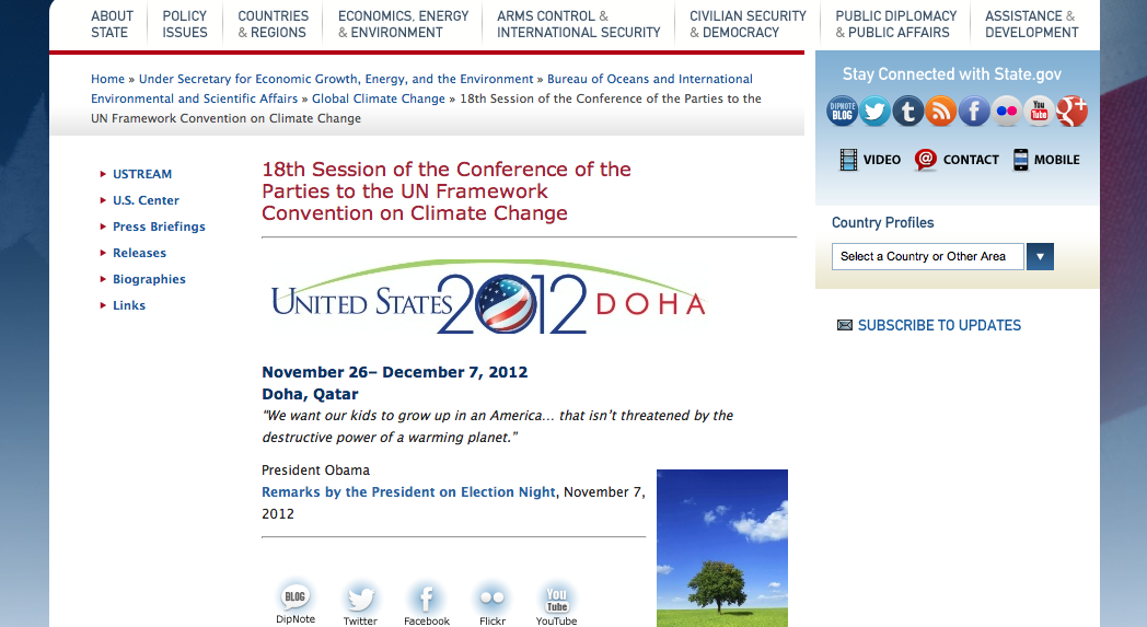 Read post →The Department of State provides everything a journalist needs to know on what the U.S. delegation is up to in Doha for COP18.