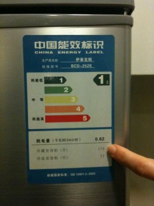 Checking the “Chinese Energy Label” on the fridge in that hotel room last night, I recognized: Many German “A++” rated fridges in Germany need more Kilo Watt Hours per year…